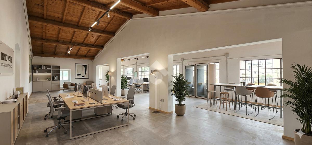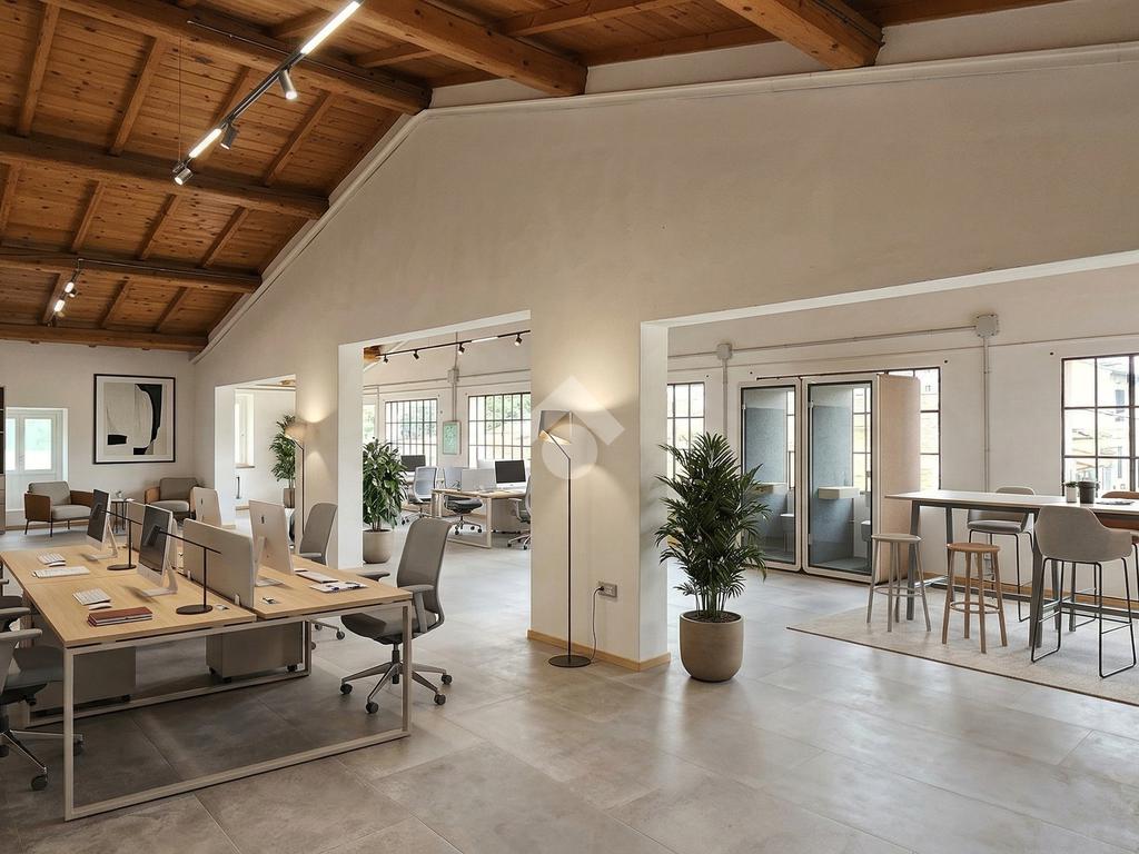 Lo spazio interno si sviluppa in un ampio open space estremamente luminoso, perfetto per studi professionali, showroom, attività artigianali o creative.