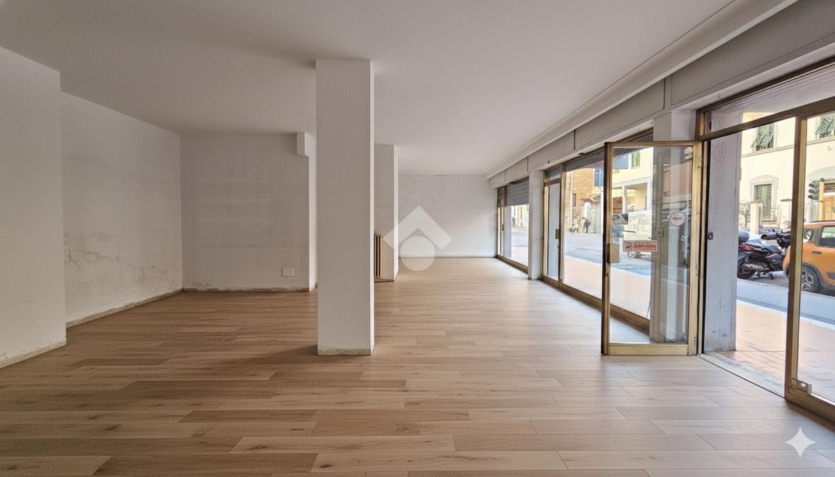 L’immobile dispone di tre ampie vetrine su strada e si trova in un tratto molto frequentato di via delle Panche, di fronte a un semaforo e circondato da numerose attività commerciali.