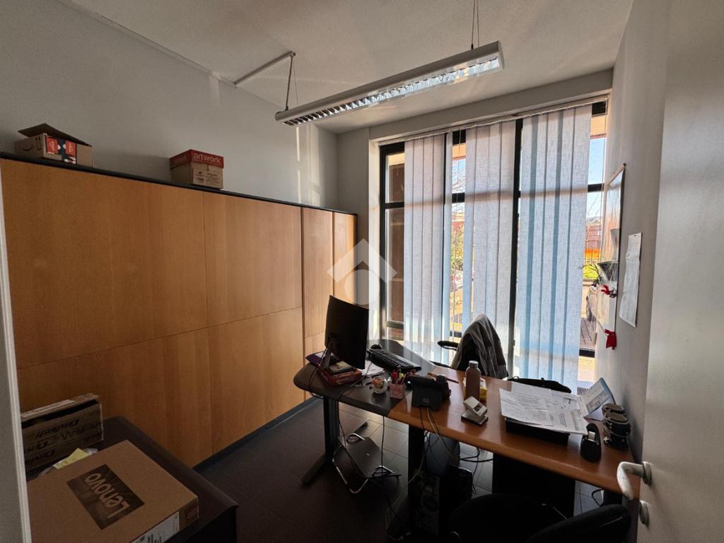 Internamente l'immobile si presenta in ottimo stato manutentivo, composto da diversi ambienti ad uso ufficio, tutti dotati di riscaldamento autonomo e aria condizionata.